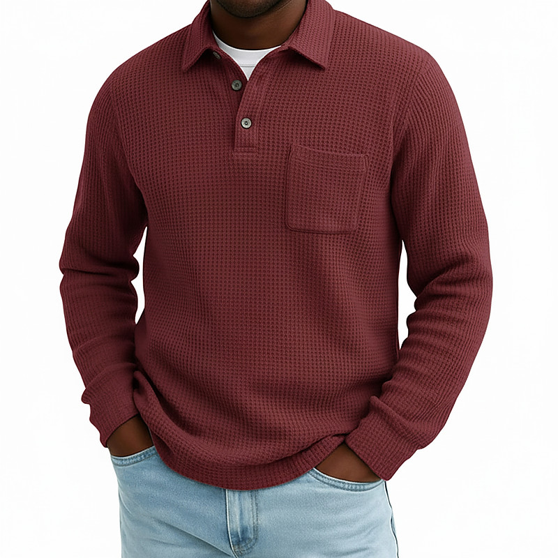 Men's Golf Polos Shirts Waffle Knit Polo Shirt Casual Business Ribbed Polo Collar Long Sleeve Fashion Basic Solid Color Knitting Fall Winter All Seasons Regular Fit Wine Navy Blue Green Gray Light