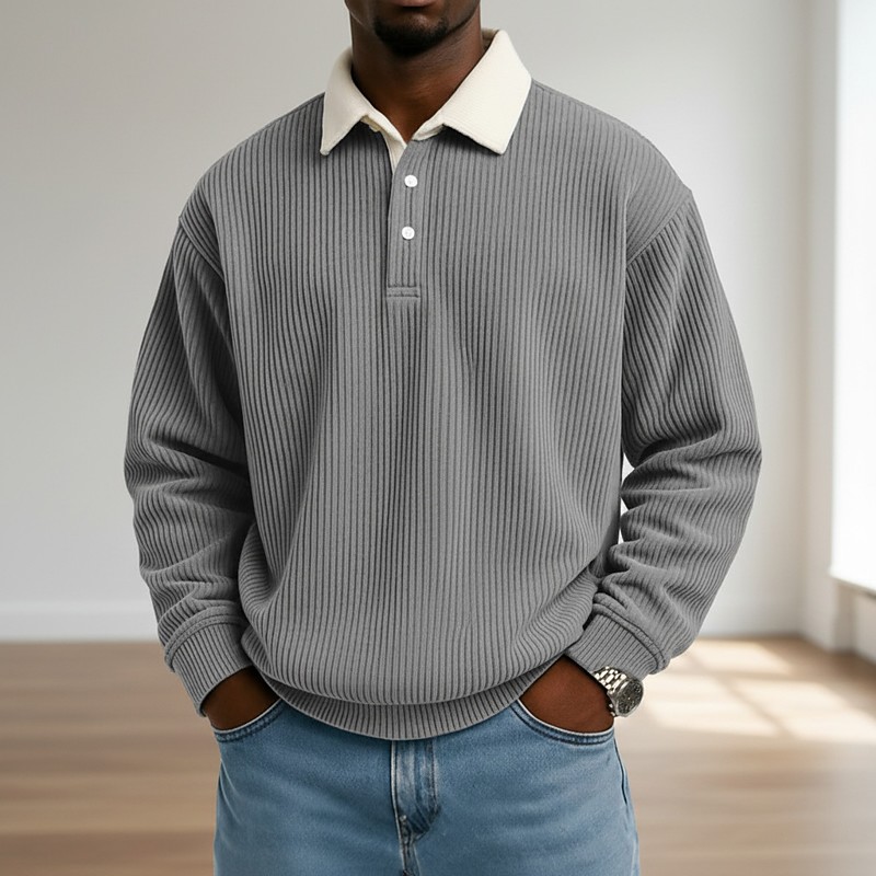 Men's Polo Corduroy Shirt Casual Sports Lapel Long Sleeve Fashion Basic Color Block Color Block Buttons Fall Spring Fall Fall Winter Regular Fit Black Wine Dark Blue Gray Light Blue Polo