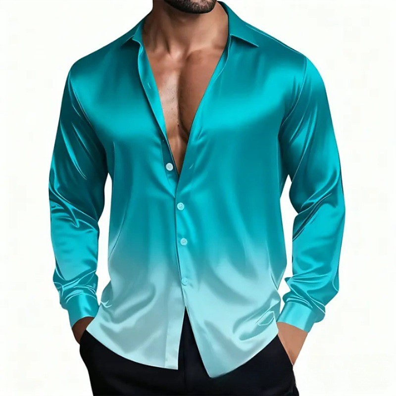Men's Shirt Satin Shirt Dress Shirt Button Up Shirt Prom Shirt Gradient Wedding Formal Light Pink Light Blue Black Blue Long Sleeve Turndown All Seasons Clothing Apparel