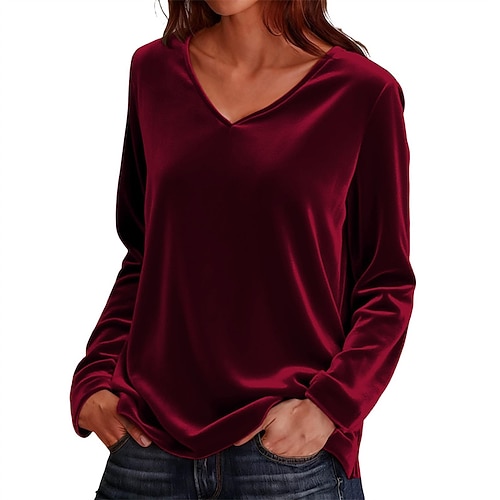 Per donna Maglietta Tinta unica Semplice Elegante Vintage Moda Manica Lunga Scollo a V Top Regolari Quotidiano Uscire Weekend Patchwork Argento Rosa Vino Rosso Blu Reale Autunno Inverno