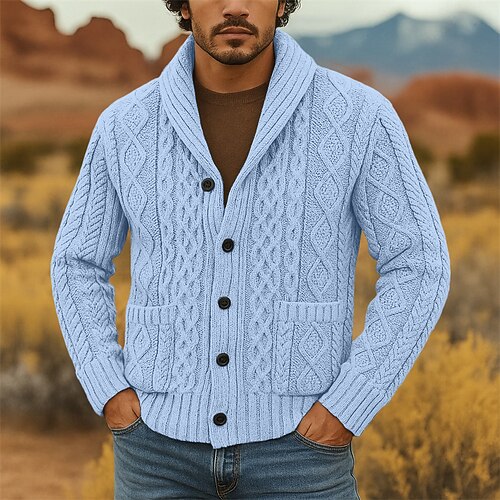 Per uomo Felpa Cardigan A Coste Treccia Maglia Top Regolari Lavorato a maglia Semplice Collo a scialle Vacanza Moda Casuale Abbigliamento quotidiano Abbigliamento Primavera Autunno Rosa Rosa S M L