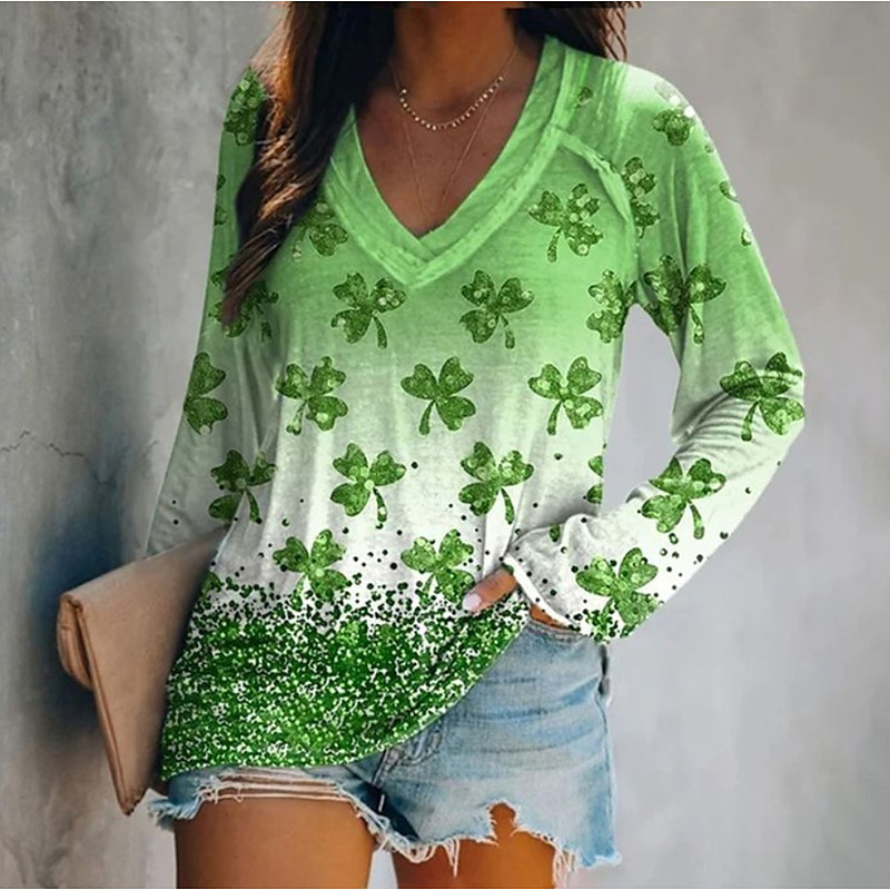 Women's T Shirt Floral Graphic Geometric Elegant Vintage Fashion Long Sleeve Crew Neck Round Neck Regular Tops Daily Weekend Print Sage Green Spring Fall Winter