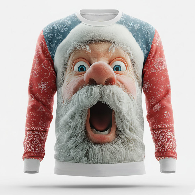 Christmas Men's Santa Claus 3D Sweatshirt Cool Party Crew Neck Vacation Party Gift Red 4 Red 3 Crewneck 3D All Seasons Designer