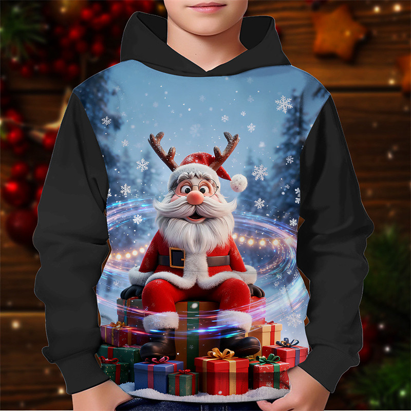 Christmas Boys' 3D Santa Claus Hoodie Long Sleeve Spring Fall Fashion Streetwear Kids 4-12 Years Hooded Outdoor Casual Daily Regular Fit