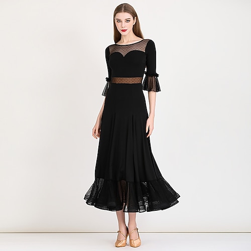 Balli da Sala Vestito Colore puro Giunzione Per donna Feste Allenamento Performance Manica 3/4 Cotone cristallo Rete