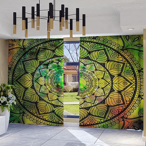 2 tende con mandala geometrico artistico, pannelli per tende da finestra in poliestere con tasca per asta, tende con motivo astratto boho, lavabili in lavatrice, adatte per soggiorno, camera da letto,