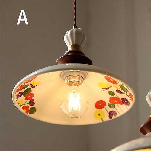 Lampada a sospensione tradizionale francese a forma di ventaglio con motivo floreale, cono in ceramica e legno di caucciù, 1 luce, attacco E26, per soggiorno, cucina e sala da pranzo, 110-240 V.