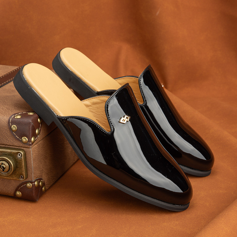 Men's Black Patent Slip-On Shoes, Elegant Formal Shoes for Weddings and Business, Comfortable and Stylish Dress Footwear for Grooms, Groomsmen and Formal Events