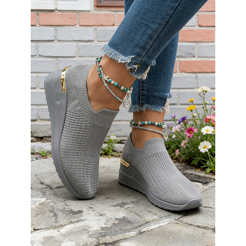 Women's Breathable Flyknit Wide-fit Slip-On Walking Shoes, Lightweight Mesh Comfort Shoes for Daily Wear, Travel, Shopping and Long Walks