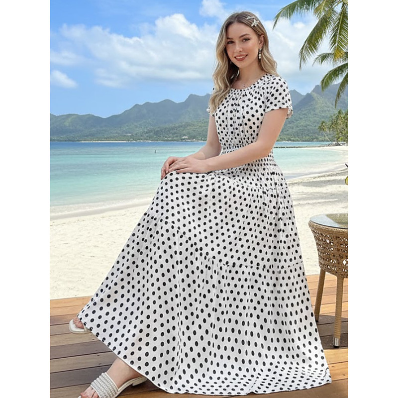 Women's Maxi Dress A Line Dress Vacation Casual Boho Daily Loose Fit Plain Short Sleeve Crew Neck Blue Black White Light Green Summer Spring Fall