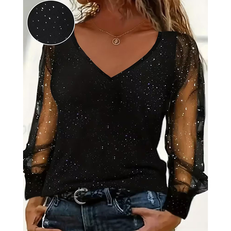 Women's Shirt Blouse Sequin Tops Plain Elegant Stylish Long Sleeve Shirt Collar Regular Tops Daily Going out Sequins Silver Black Red Purple Gold Fall Winter