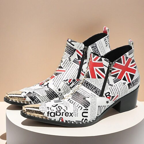 stivaletti da uomo con stampa di giornale: design unico in pelle con stampe audaci, perfetti per lo street style e gli incontri informali