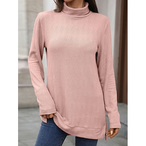 Per donna Blusa Tinta unica Elegante Casual Manica Lunga Dolcevita Top Regolari Quotidiano Giallo Rosa Blu marino Grigio scuro Azzurro Primavera Autunno Inverno