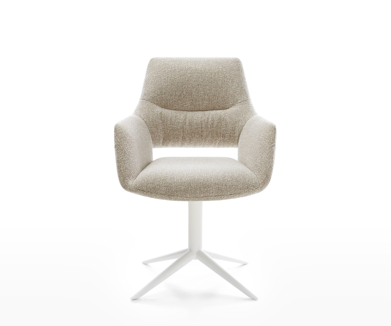 DELIFE Draaistoel Yago-Flex met armleuning bouclé zacht beige kruispoot grafiet 360° draaibaar rocker-functie pocketveer kern