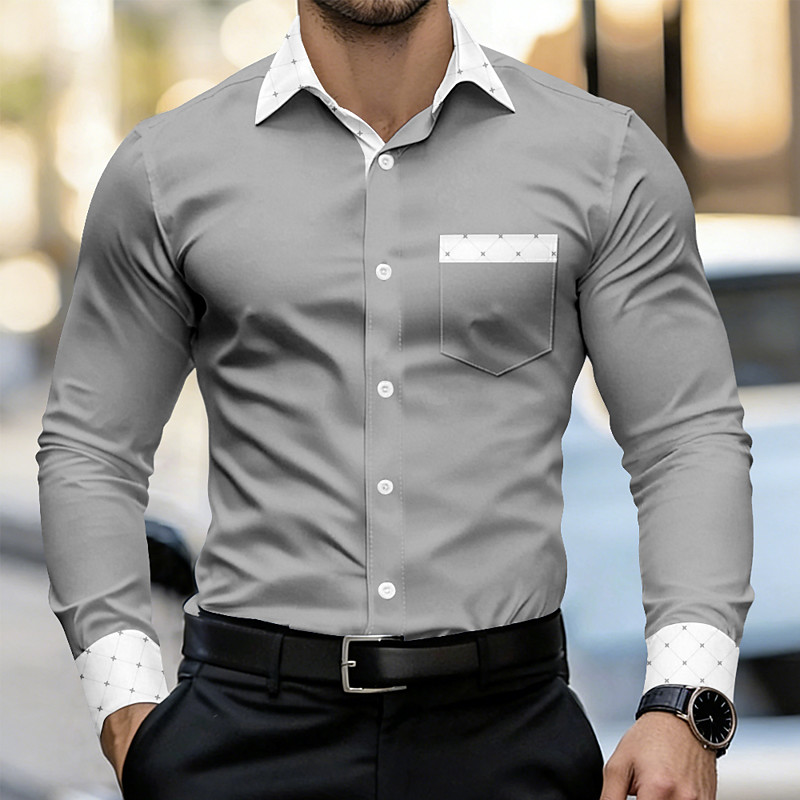 Men's Geometric Color Block Shirt Button Up Shirt Casual Dress Shirt Long Sleeve Fashion Casual Outdoor Dailywear Spring Fall Turndown 3D Print Collared Shirts Blue Purple Green Gray