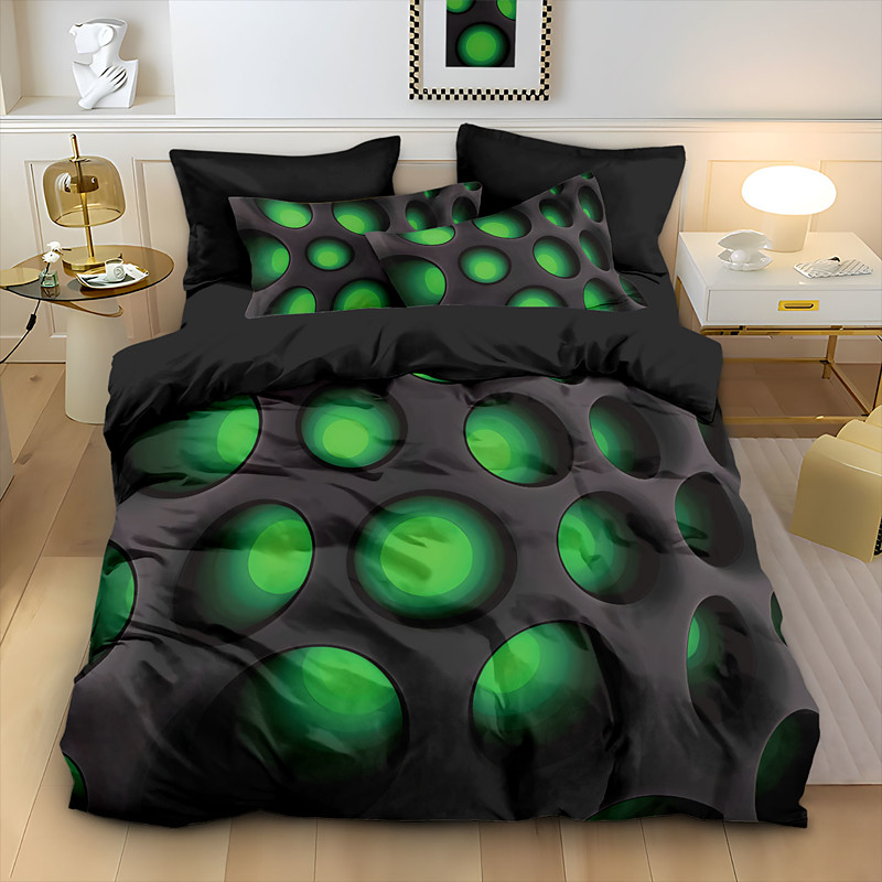 Duvet Cover Set Dense Glowing Green Hole Print Hotel Style Bedding Set with 1 Duvet Cover and 2 Pillowcases Soft Short Plush Fabric No Comforter Included