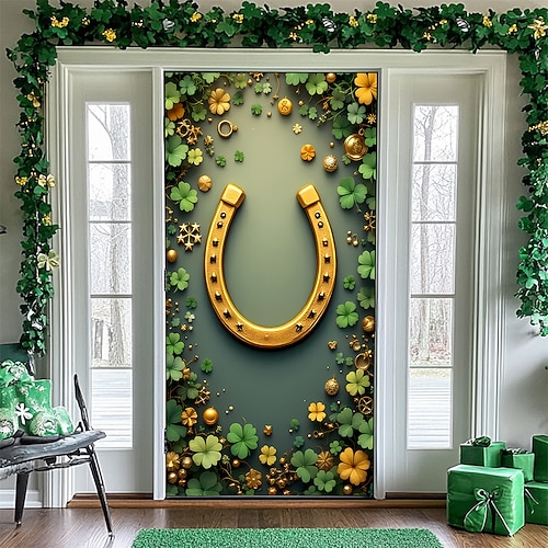 Festa di San Patrizio Poster Copertura della porta Banner per esterni Cappello verde Trifoglio Carino 3D Da serata Dormitorio Stanza per adolescenti Dormitorio universitario Ragazzi Man Cave Frat