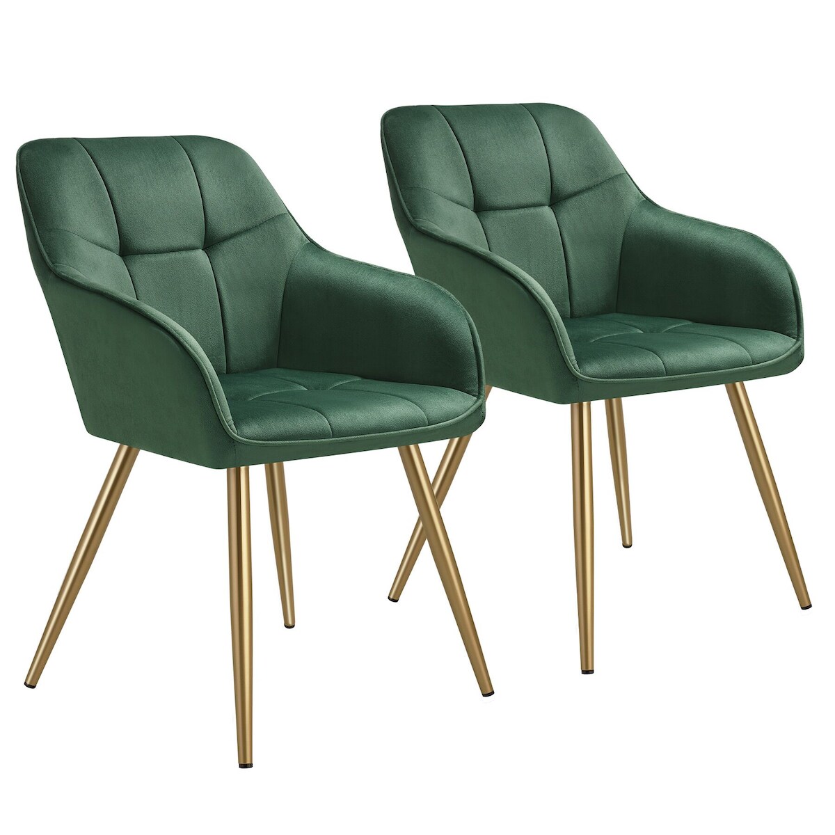 TECTAKE Stuhl Marilyn, Samtoptik, gesteppt 2er Setdunkelgrün/gold