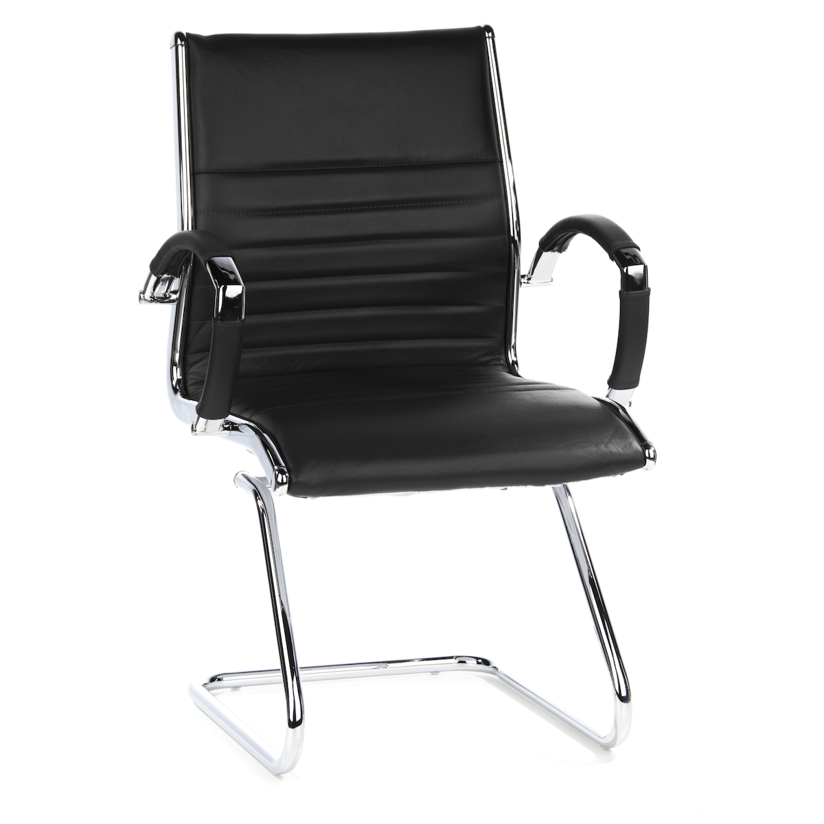 Konferenzstuhl / Freischwinger / Stuhl PARMA V Leder schwarz Chrom hjh OFFICE