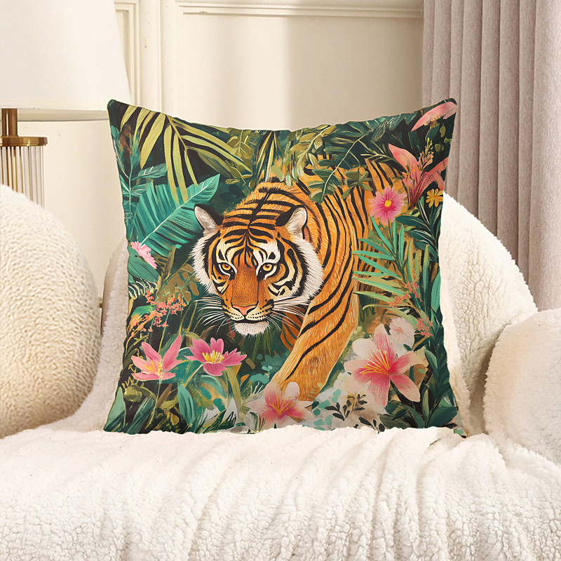 Tropical Tigers Decorative Toss Pillows Cover 1PC Soft Square Cushion Case Pillowcase for Bedroom Livingroom Sofa Couch Chair
