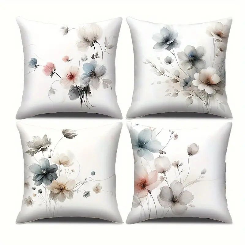 Floral Decorative Toss Pillows Cover 4PC Soft Square Couch Cushion Case Pillowcase for Farmhouse Bedroom Livingroom Sofa Chair