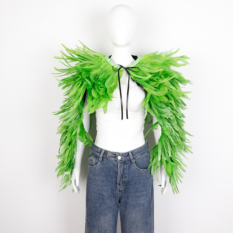 Carnival 2026Rio Carnival Samba Accessories Women's Mardi Gras Feather Cape Shawl, Purple Green Gold Feather Poncho with Jeweled Collar Brazil Festival Performance Costume
