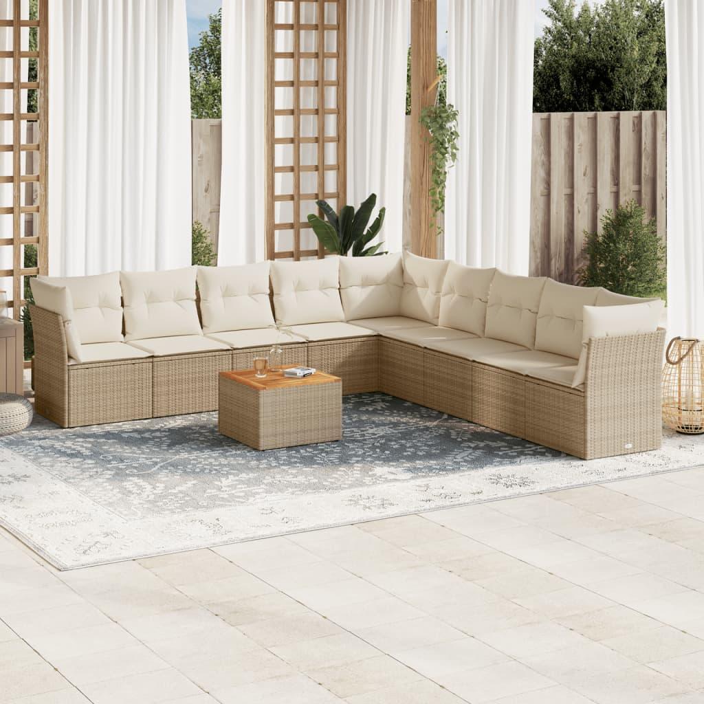 Sofasæt til haven 10 dele med hynder polyrattan beige