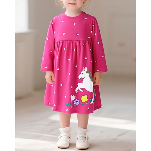 Bambini Ragazze Abito Natale Unicorno Manica Lunga All'aperto Regali di Natale Patchwork Moda Carino Poliestere Lunghezza al ginocchio Abito a trapezio Primavera Autunno Dai 4 anni in su Rosa