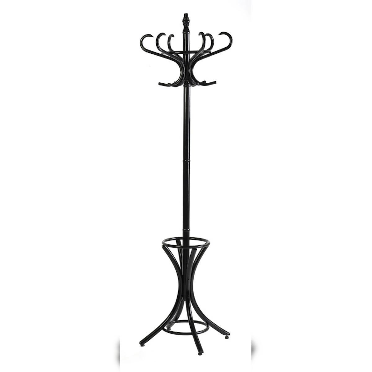PROREGAL Freistehender Garderoben- & Regenschirmständer aus Holz | Höhe 185cm | Drehbare Krone & 12 Haken | Schwarz