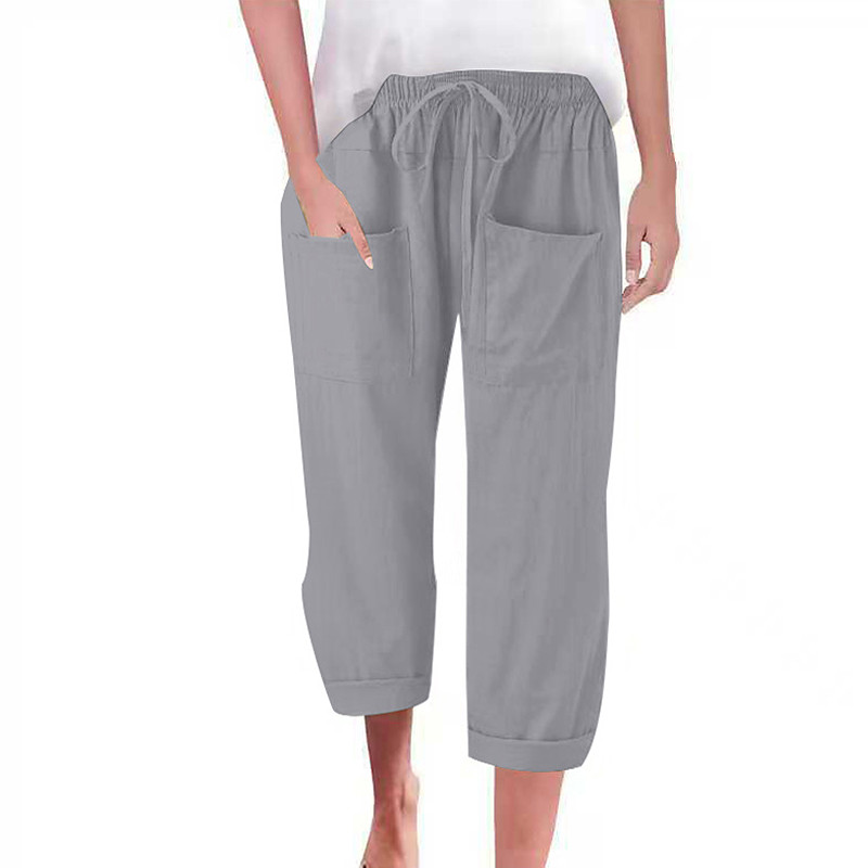 Women's Capri Pants Cotton Linen Pants Slacks Streetwear Casual Calf-Length Natural Plain Pocket Elastic Drawstring Design Outdoor Comfortable Street Going out Grey Black White Green Summer Regular