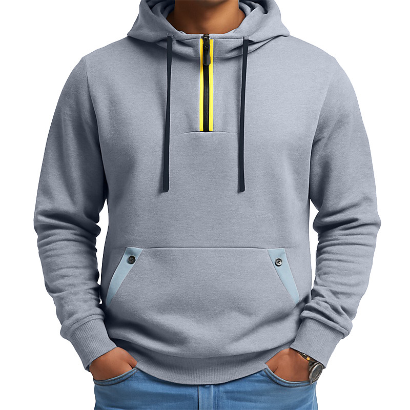 Men's Hoodie Quarter Zip Hoodie Black Army Green Light Grey Dark Gray Hooded Color Block Jacquard Pocket Sports Outdoor Daily Holiday Polyester Streetwear Basic Casual Spring Fall Clothing Apparel