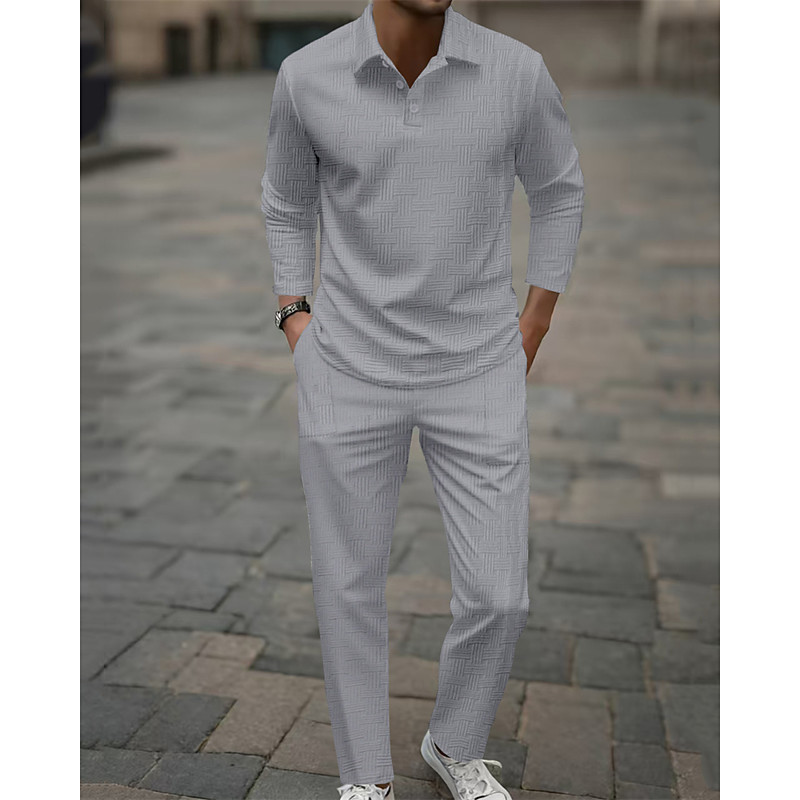 Men's Golf Shirt Golf Polos Shirts Work Casual Lapel Long Sleeve Basic Modern Plain Jacquard Buttons Spring Fall Regular Fit Black White Sky Blue Khaki Army Green Gray Golf Shirt