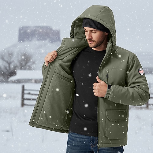 Per uomo Giacca da Esterno Giacca in Pile Formale Casa Tasca Cappuccio Rimovibile Inverno Autunno Tinta unica Attivo Neutro Con Cappuccio Nero Blu marino Verde Cachi Grigio Giacca