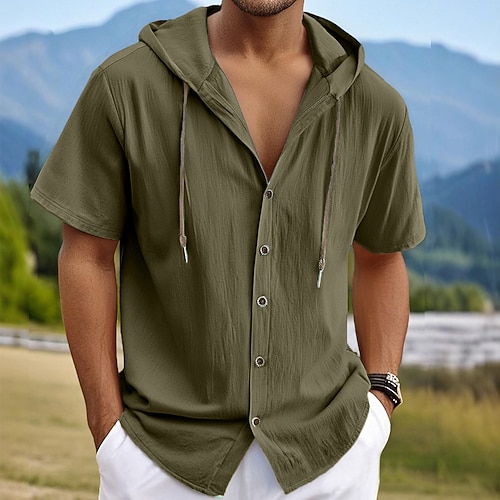 Per uomo Camicia Camicia di lino Camicia Estiva Abbigliamento da spiaggia Camicia con cappuccio Tinta unica Vacanza Ferie Nero Bianco Blu marino Verde Manica Corta Con Cappuccio Estate Primavera