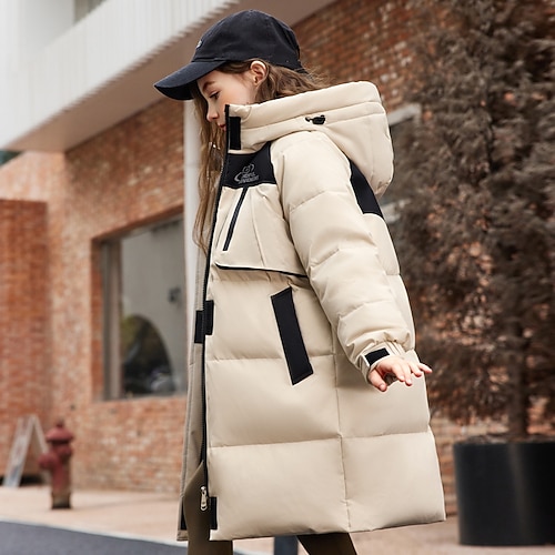 Kinder Mädchen Daunenjacke Outdoorjacke Daunenjacke Farbblock Mode WASSERDICHT warm halten Winddicht Outdoor Mantel Oberbekleidung 4-12 Jahre Herbst Rosa Purpur Khaki