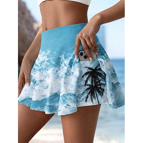 Per donna Gonna da vacanza Gonna da tennis Elegante Moda Hawaiano Abbigliamento da Spiaggia Mini Vita Alta Gonne Floreale Grafico Alta elasticità Quotidiano Spiaggia Bianco e blu Arancione Blu scuro