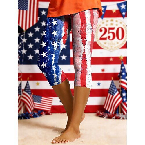 leggings da donna per il giorno dell'indipendenza americana, moda per le vacanze, pantaloni capri casual a vita alta, comodi, elastici, per tutti i giorni, per le vacanze, per strada, blu, bianco,