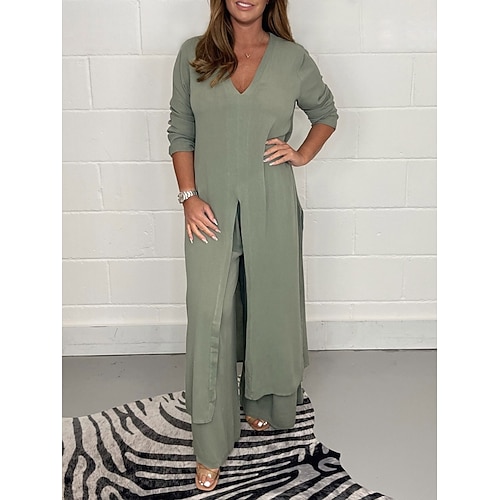 Per donna Set da due pezzi Set di Pantaloni Manica Lunga Scollo a V Semplice Moda Streetwear Casuale Quotidiano All'aperto Blu Nero Bianco Estate Vestibilità regolare