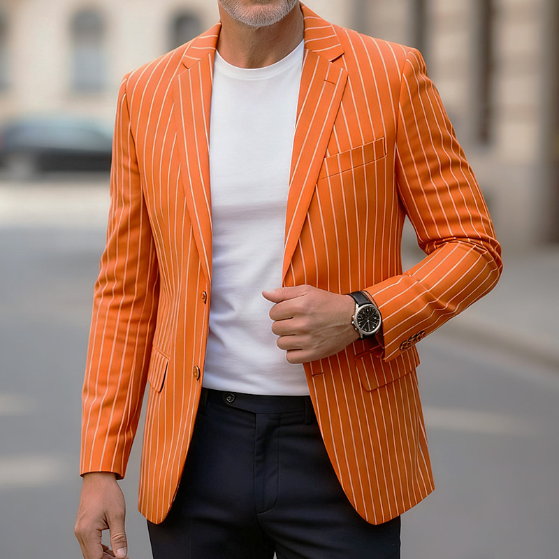 Men's Blazer Business Cocktail Party Wedding Party Fashion Casual Spring Fall Cotton Blend Stripes Pocket Buttons Comfortable Single Breasted Blazer Pink Purple Orange Light Blue