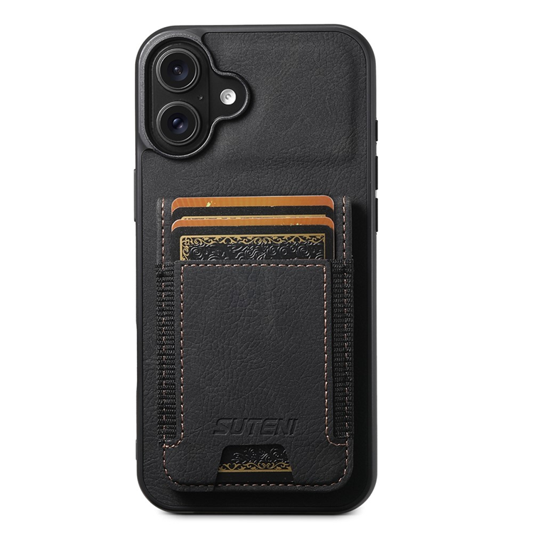 SUTENI Mobilskal till iPhone 16 Plus Korthållare Litchi Läder