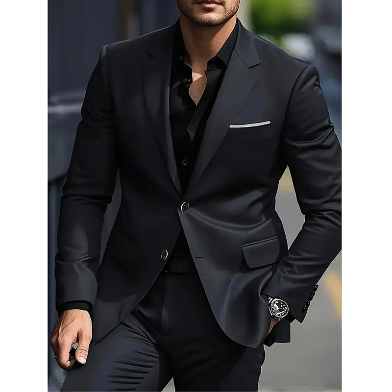Men's Wedding Business Tweed Suits Notch Lapel Black Burgundy Daily Business Solid Colored Standard Fit 2 Piece Single Breasted Two-buttons