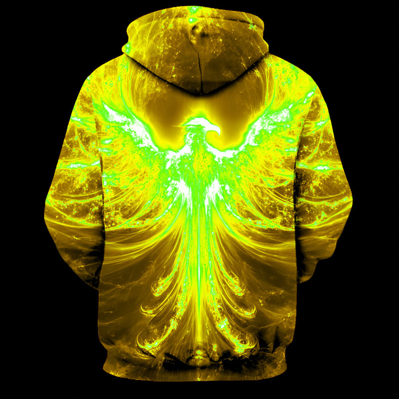 Men's 3D Flame Phoenix Hoodie Sweatshirt Cool Party Long Sleeve Crew Neck Club Streetwear Yellow Orange Light Orange Drawstring Fall Winter Designer S M L XL XXL XXXL