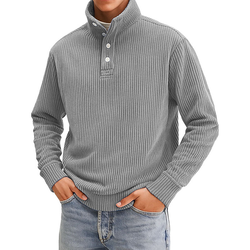 Men's Sweatshirt Corduroy Pullover Hoodie Sweatshirt Pullover Button Up Hoodie Apricot Black White Light Green Burgundy Standing Collar Plain Textured Sports Outdoor Casual Daily Streetwear Cool