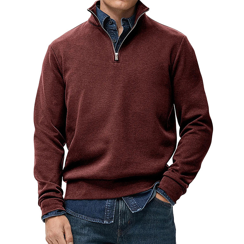 Men's Polo Shirts Quarter Zip Polo Daily Wear Date Quarter Zip Long Sleeve Fashion Basic Plain Zipper Spring Fall Regular Fit Wine Black White Navy Blue Light Grey Army Green Polo Shirts