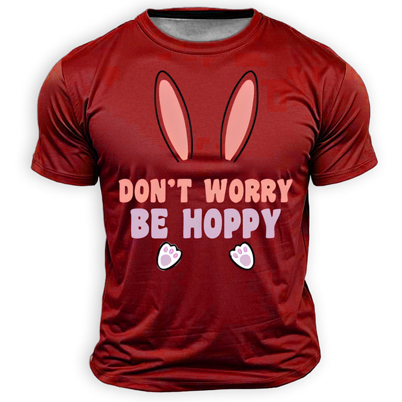 Bunny Rabbit T Shirt Dont Worry Be Hoppy Funny Pun Graphic Tee Pink Cute Animal Ears Paws Print Spring Holiday Gift For Men Women Clothing Apparel S M L XL XXL XXXL