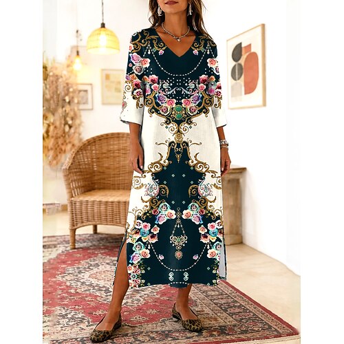 Per donna Abito maxi Abito Boho Abito a Tubino Vestito Estivo Abito da Spiaggia Bohemien Vacanza Etnico Spiaggia Ferie Data Vestibilità comoda Grafico Astratto Manica 3/4 Scollo a V Blu Arancione