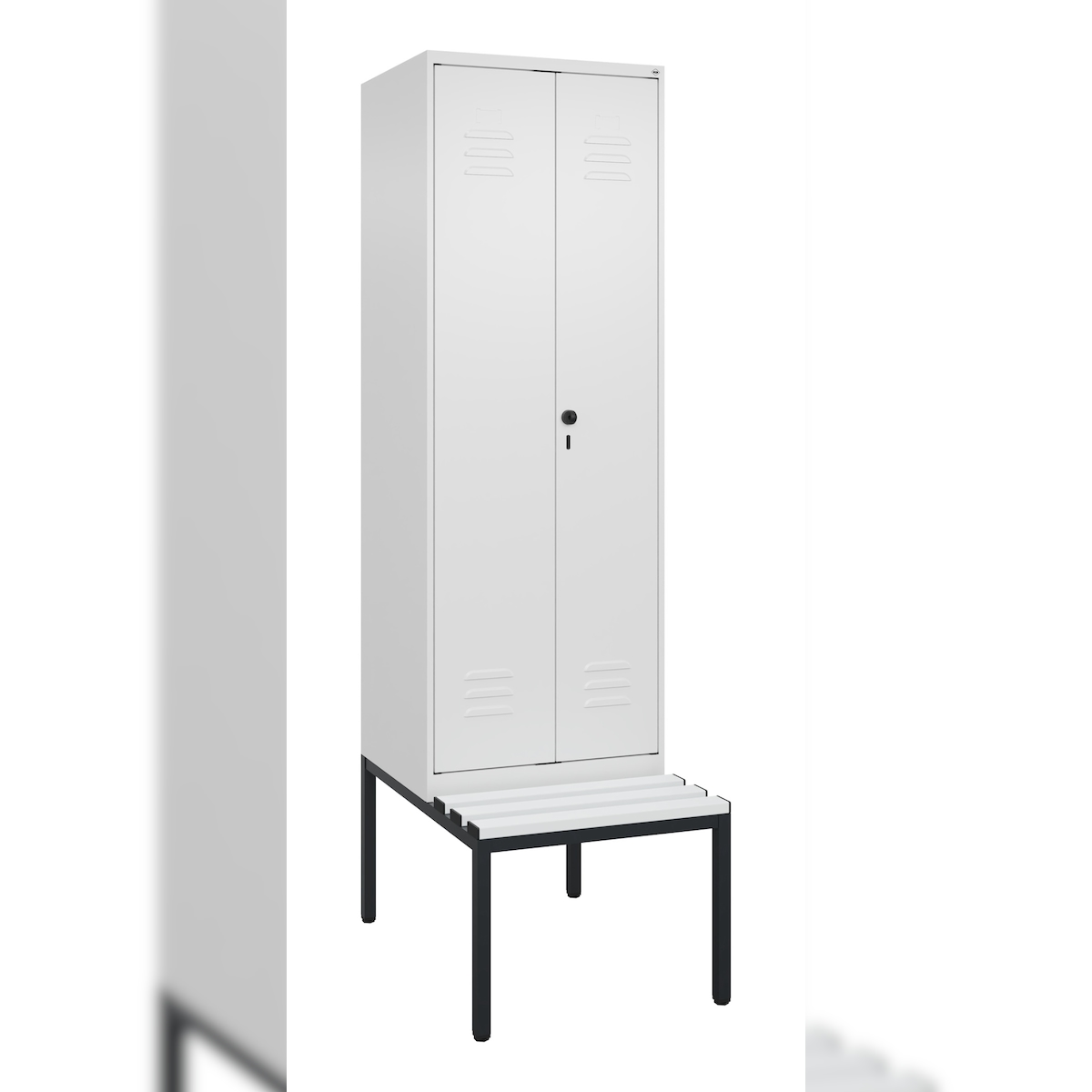 C+P Doppel-Spind Classic PLUS Kunststoff untergebaute Bank, 2 Abteile, HxBxT 212x60x82cm, Sicherheitsdrehriegel, Verkehrsweiß von PROREGAL