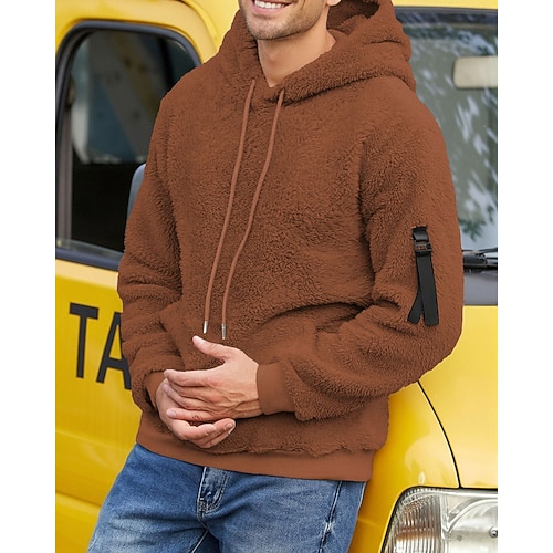 Men's Hoodie Fleece Hoodie Fleece lined Hoodie YellowOrange ApricotBlack CamelBlack PurplePink PinkNavy Blue Hooded Plain Kangaroo Pocket Sports Outdoor Casual Daily Streetwear Cool Sportswear