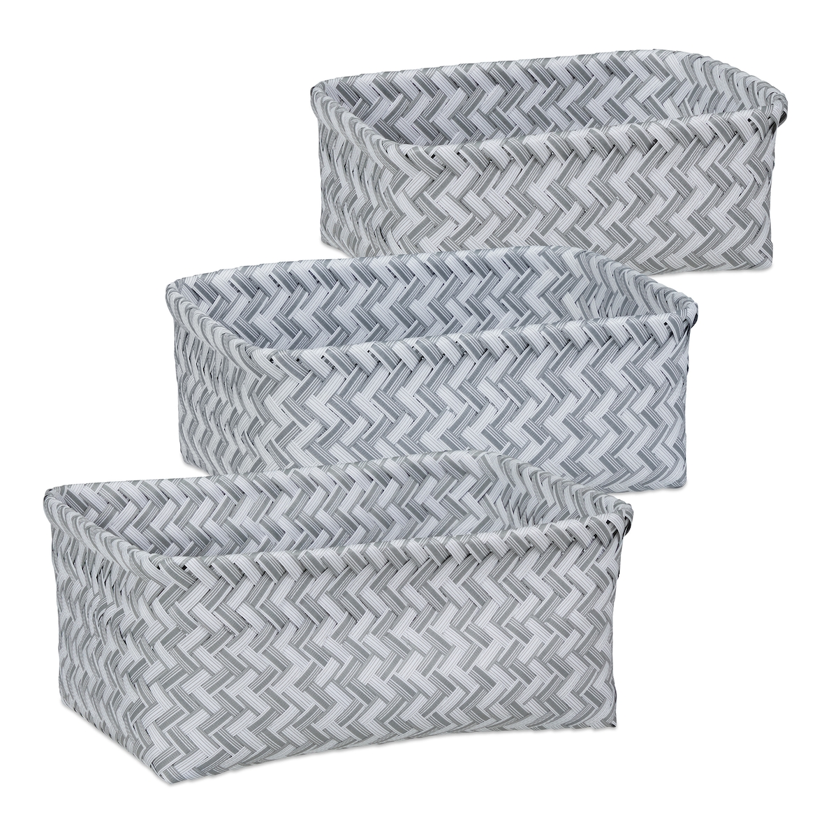 Relaxdays Aufbewahrungskorb 3er Set, Körbchen in 3 Größen, geflochten, Korb Badezimmer, Dekokorb Kunststoff, weiß-grau