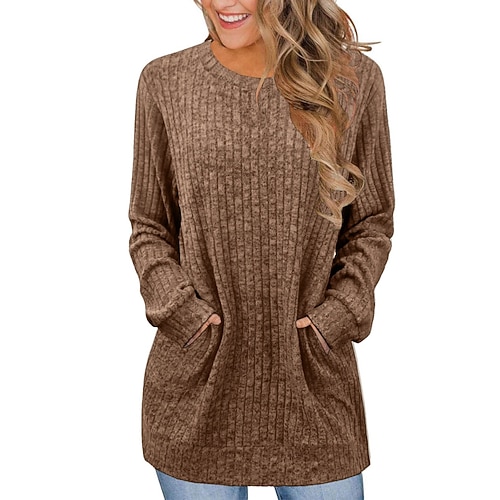 Per donna Blusa Tinta unica Elegante Casual Manica Lunga Girocollo Top lunghi Quotidiano Tasca Nero Blu Viola Marrone Verde Primavera Autunno Inverno